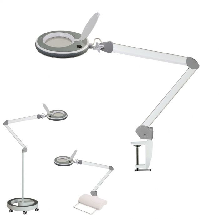 Professzionális nagyítólámpa, Lumeno 821X modell, állítható fényerővel és kristálytiszta üveglencsével, 3 vagy 5 dioptriával.